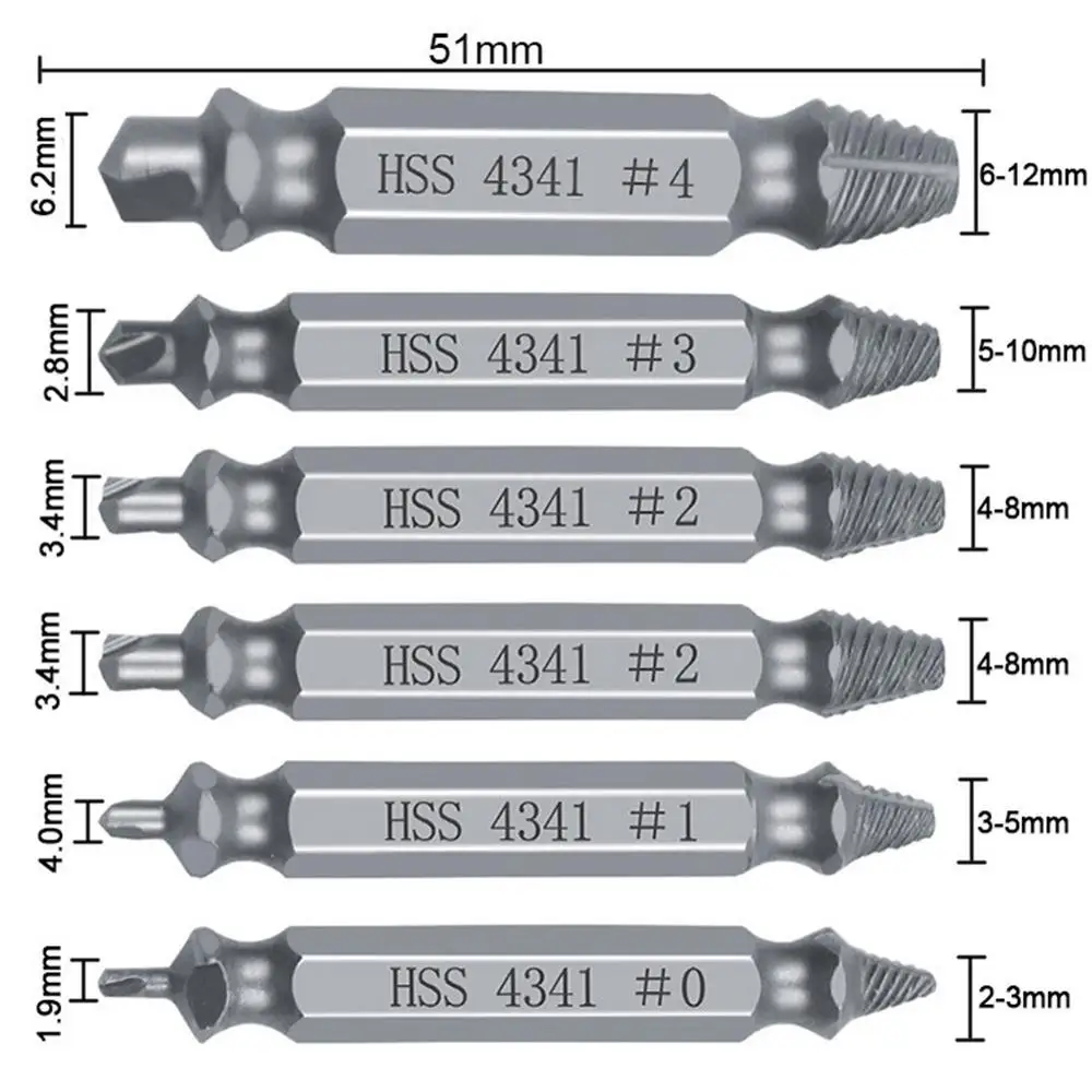 Addition Information of 6pcs Damaged Screw Extractor Speed Out Drill Bits Tool Set Broken Bolt Remover 40FP14